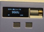 The menu/timbre button below is used to cycle through Solid State (SS), Classic Tube, and Modern Tube with a single press, or to enter the Settings Menu when you long-press it. When the menu is activated, use the volume knob to scroll through the options, and then press the menu button again to make a selection. The volume wheel is positioned on the front and features a smooth control with a distinct click action at every step as you turn it; however, on a few occasions, it did skip a step. The wheel features a knurled surface with ridges for a better grip as you rotate it with your thumb. To the left of the volume wheel is a 0.96” display, showing various functions, settings, and the playback sampling rate.