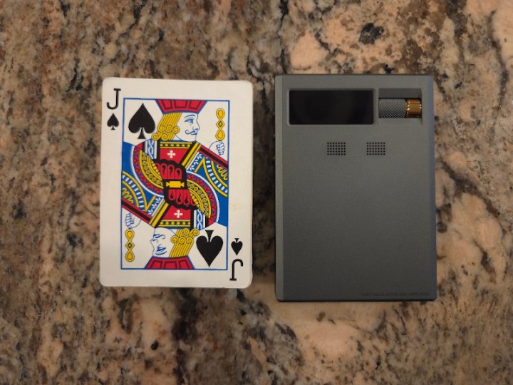 The top of the RU9 features a tinted plastic “window” that ensures the metal chassis around that area does not block the BT antenna. The left side features three equally spaced, identical-sized playback transport buttons with a tactile feel, as well as separate “skip next” and “skip back” buttons, and a play/pause button positioned between them. The right side features a power button at the top, which can turn the power on or off with a long press, and the display on or off with a short press. Then, you have a multicolor indicator LED to show when the device is charging (red) or displaying various colors for different sampling rates.