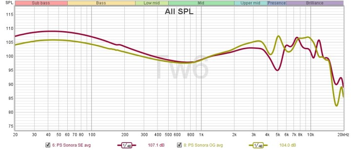 In more detail, the bass has a deep, elevated sub-bass rumble and a rounded, laidback, slower mid-bass punch. The low-end tuning has an elevated presence, being fuller and thicker, with a slower attack and longer decay of notes, the complete opposite of fast, articulate bass in the OG model, which had a faster attack/shorter decay and more precise articulation. The bass of SE sounds like it’s coming from a floor-standing speaker with a big subwoofer, creating a smooth transition blending the bass and the lower mids.